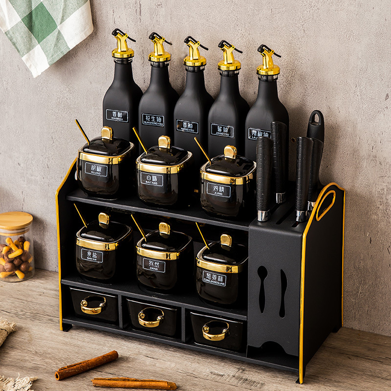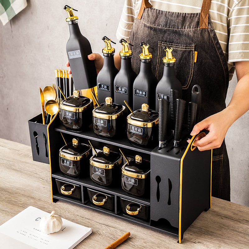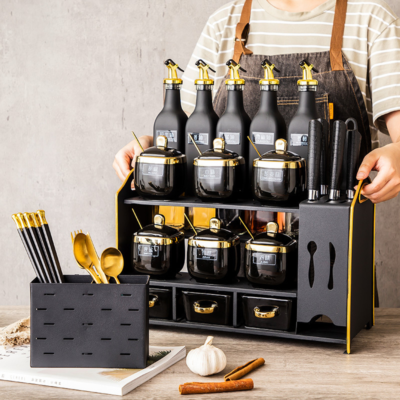 厨房铁艺置物架调料盒收纳套装玻璃油壶组合家用北欧陶陶瓷调料罐