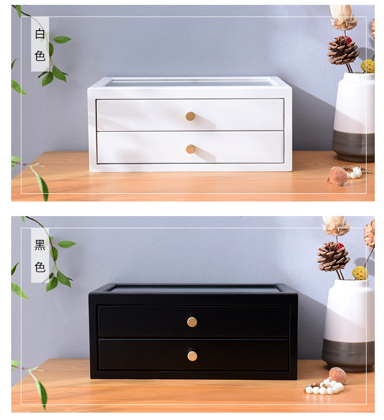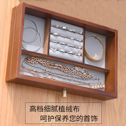 双层大容量首饰盒 便携木质珠宝首饰收纳盒 项链戒指手表首饰盒子