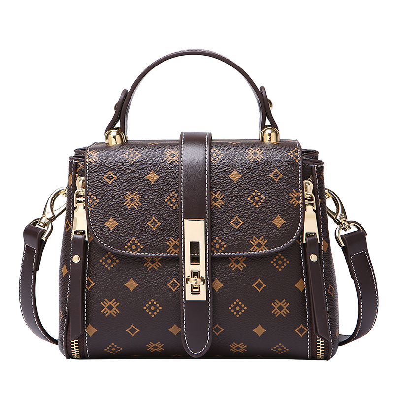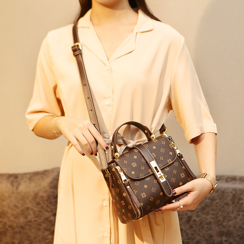 法国小众高级感小包包新款 百搭老花水桶包时尚斜挎女包大容量