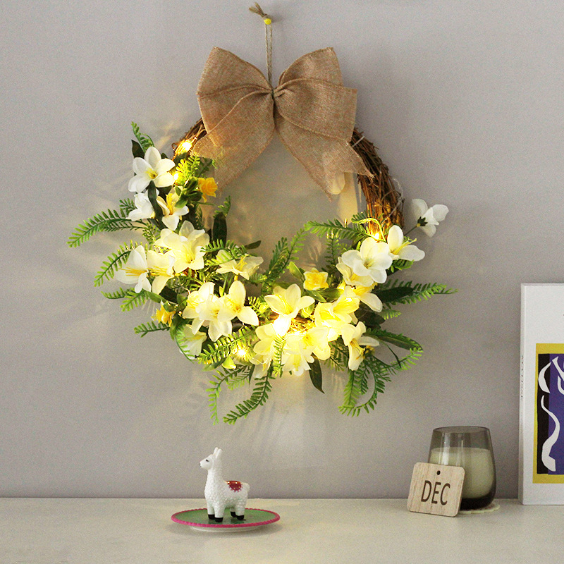 ins北欧家居装饰品 仿真花带灯花环 婚庆兰花门墙壁挂饰