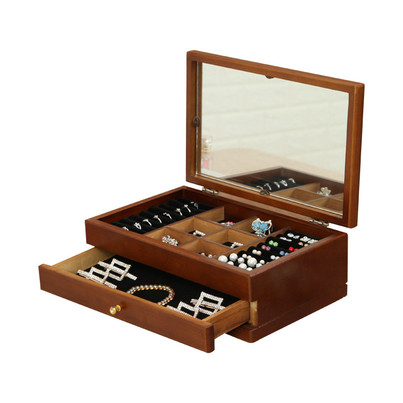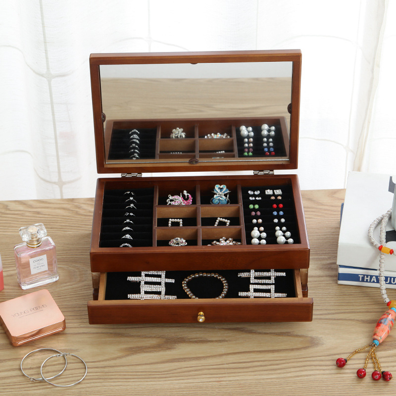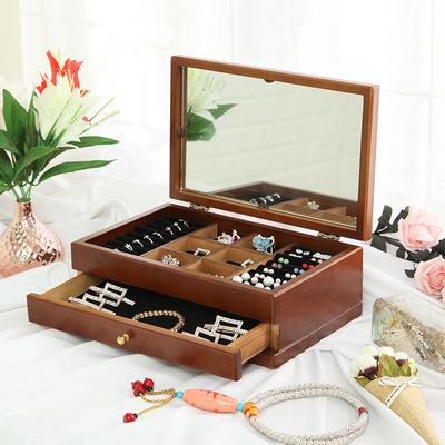 带镜子木质首饰盒欧式木质首饰收纳盒韩国公主饰品盒结婚生日礼物