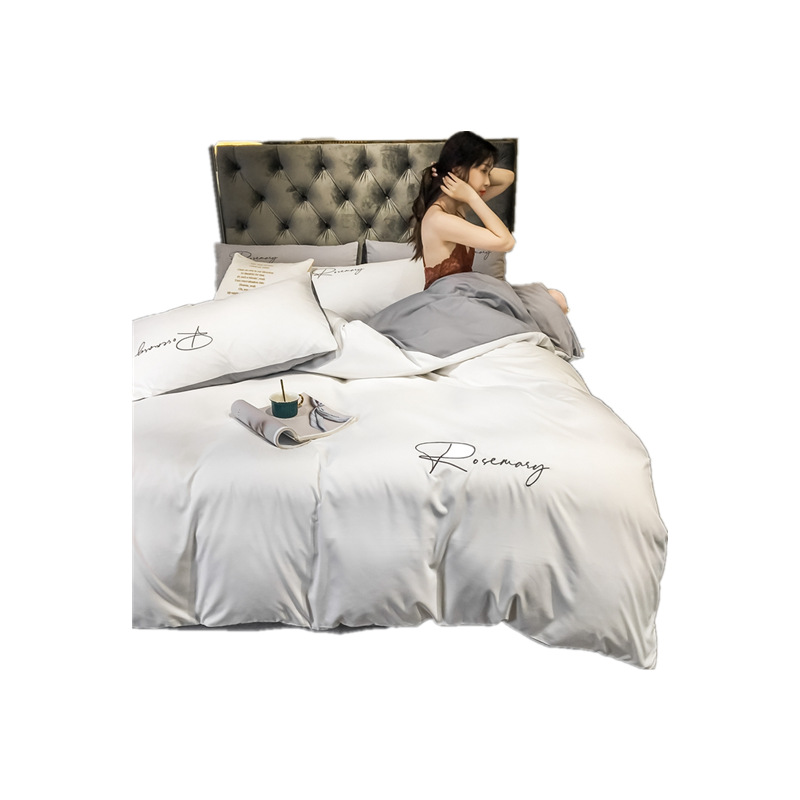 优质刺绣水洗棉纯色磨毛四件套床单被套学生宿舍床笠款床上用品