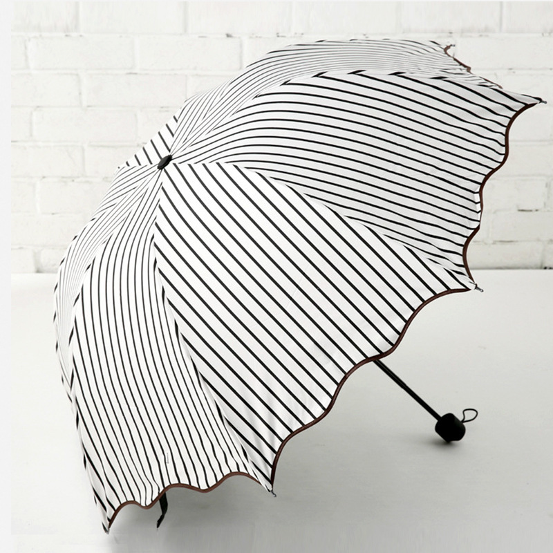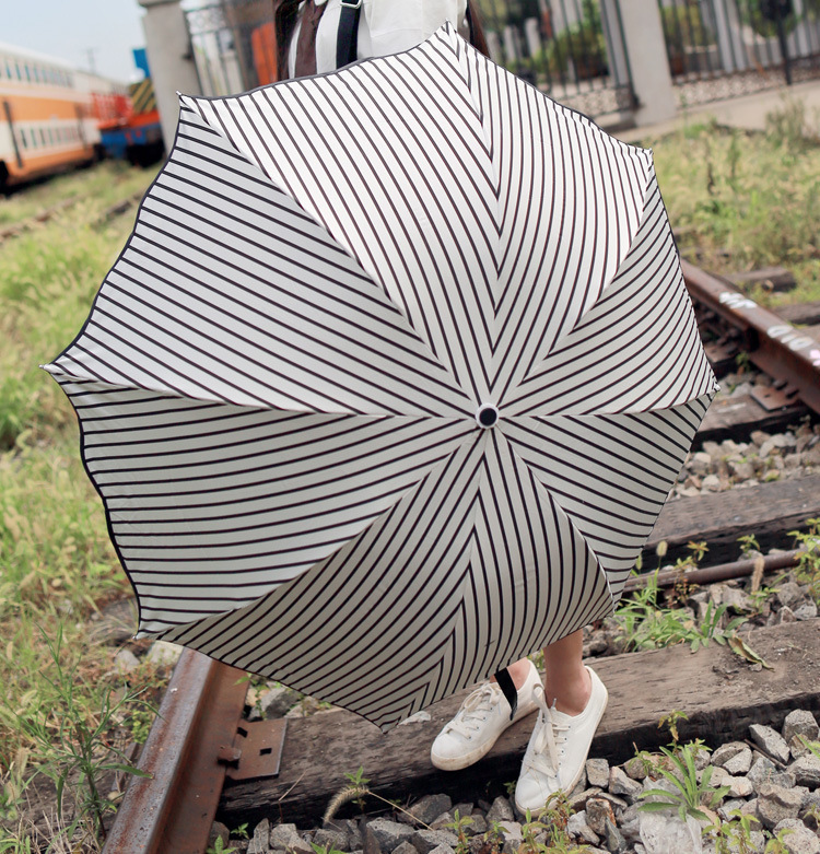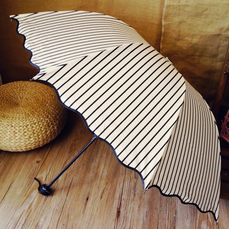 创意女遮阳晴雨伞日系学生文艺折叠小防晒清新太阳伞条纹两用黑胶