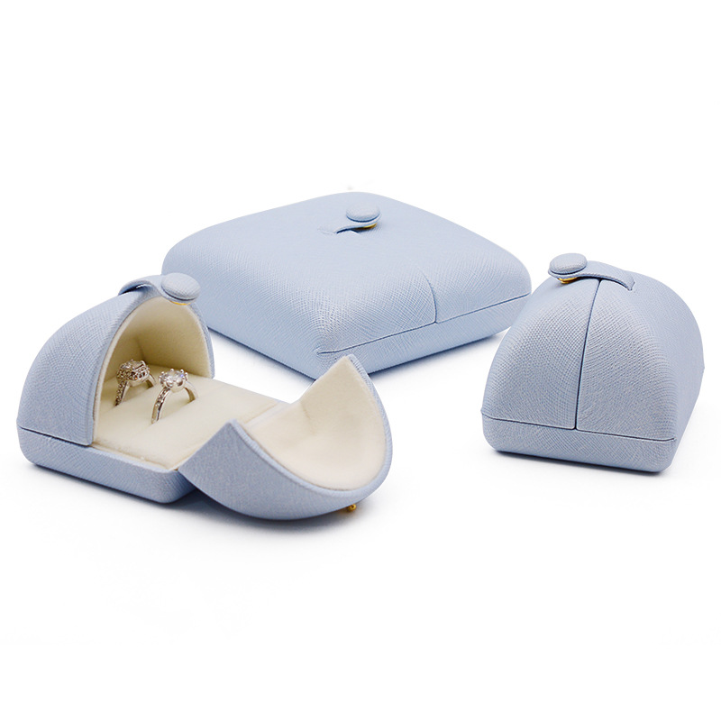 双开网格纹皮料创意戒指盒对戒盒项链盒子耳环盒胸针盒手镯长链盒