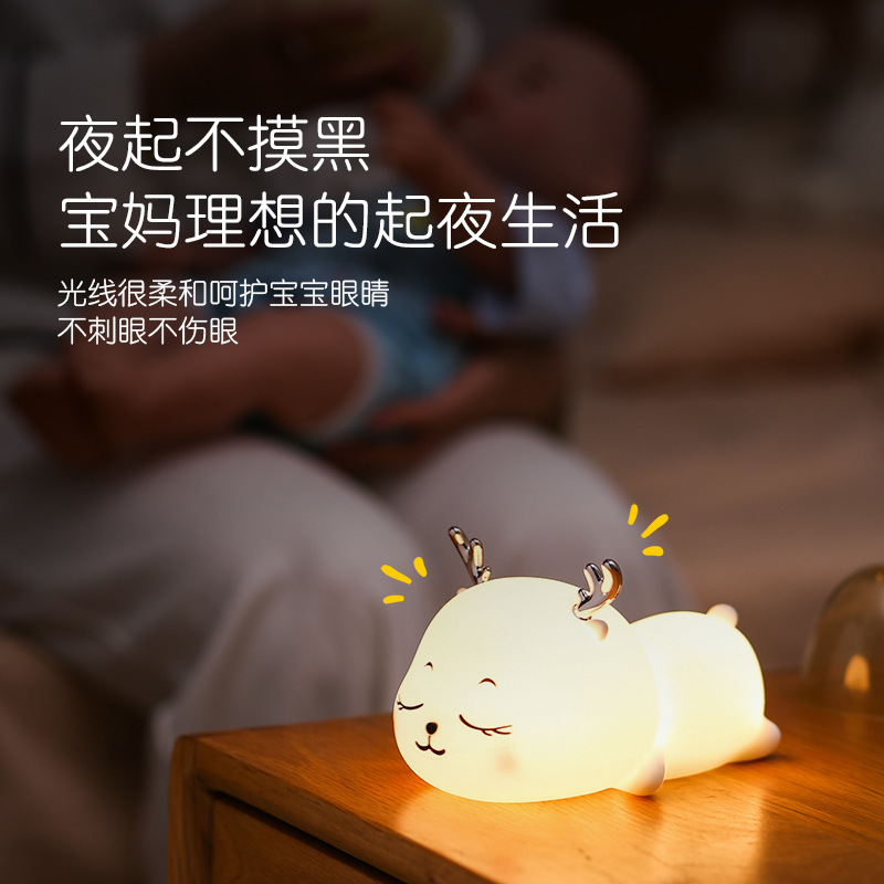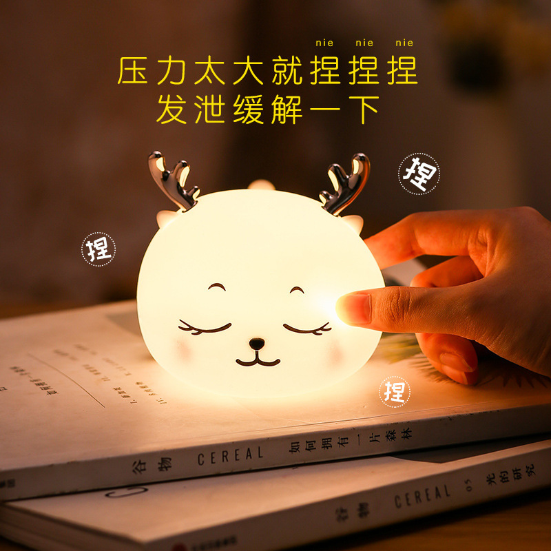 硅胶拍拍灯萌鹿led充电七彩小夜灯床头伴睡灯儿童节创意礼品