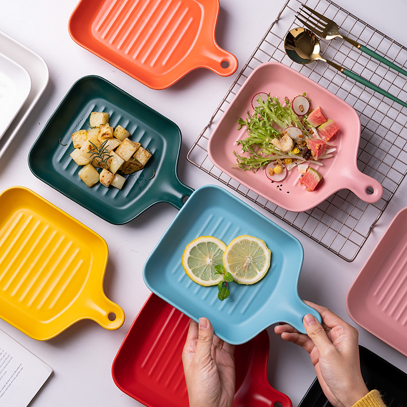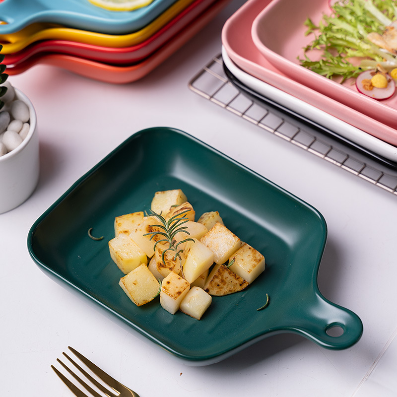 家用创意早餐陶瓷烤盘子点心碟沙拉盘西餐意面盘烤箱带手柄烘焙盘