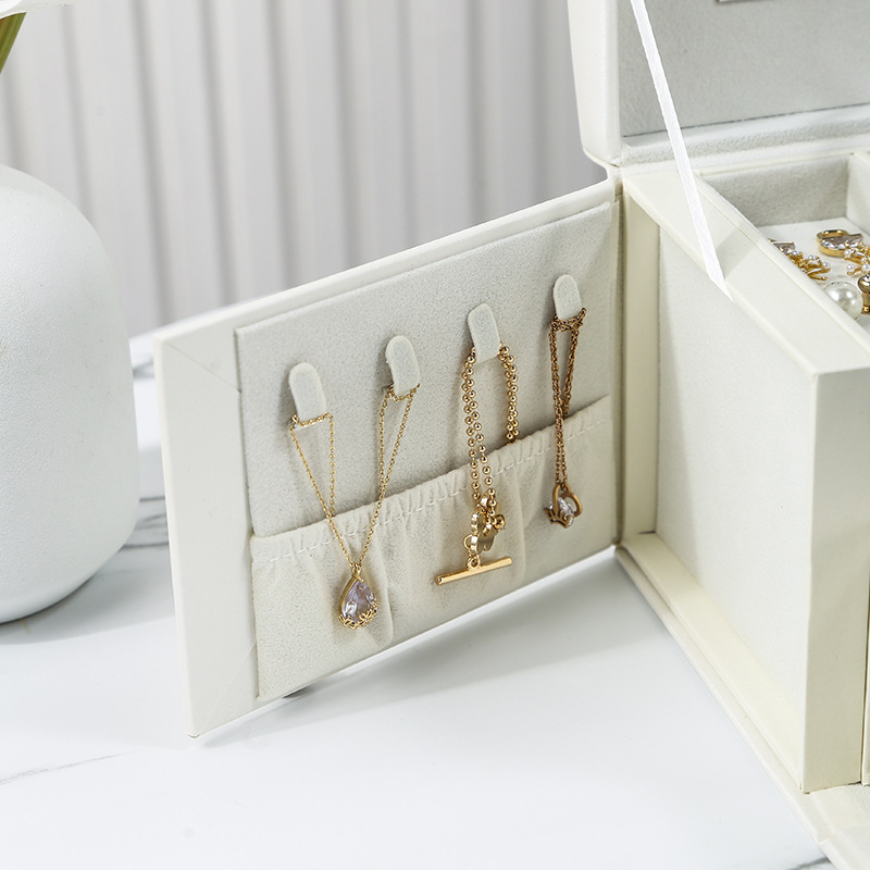 新款皮质首饰收纳盒三层抽屉珠宝饰品箱多功能带镜项链收纳盒