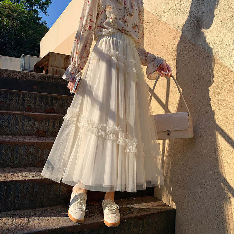 纱裙女梦幻半身裙秋冬 小个子蓬蓬白色超仙女中长款网纱裙