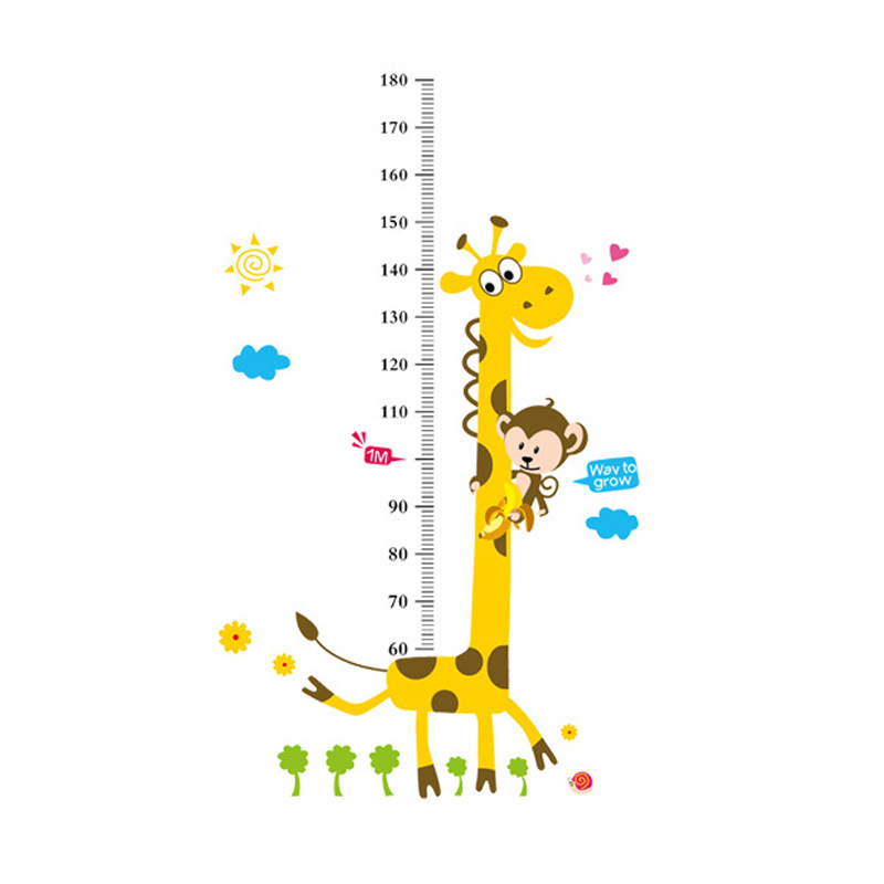 卡通可贴画宝宝贴纸儿童房身高客厅墙贴身高尺动物量移除墙面装饰