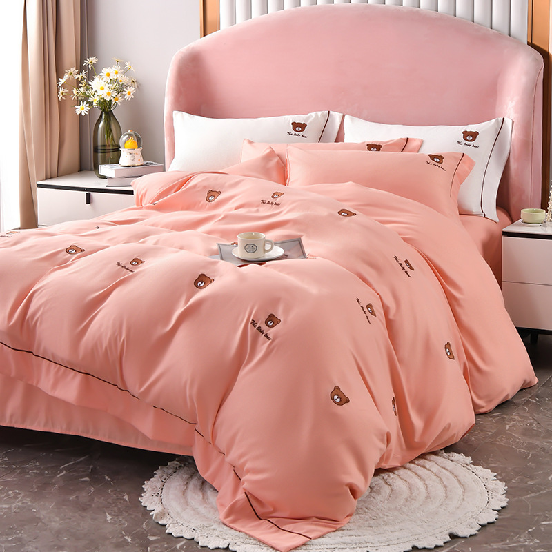 120支洛卡棉床单纯色纯棉全棉四件套加厚磨毛长绒棉被套床上用品