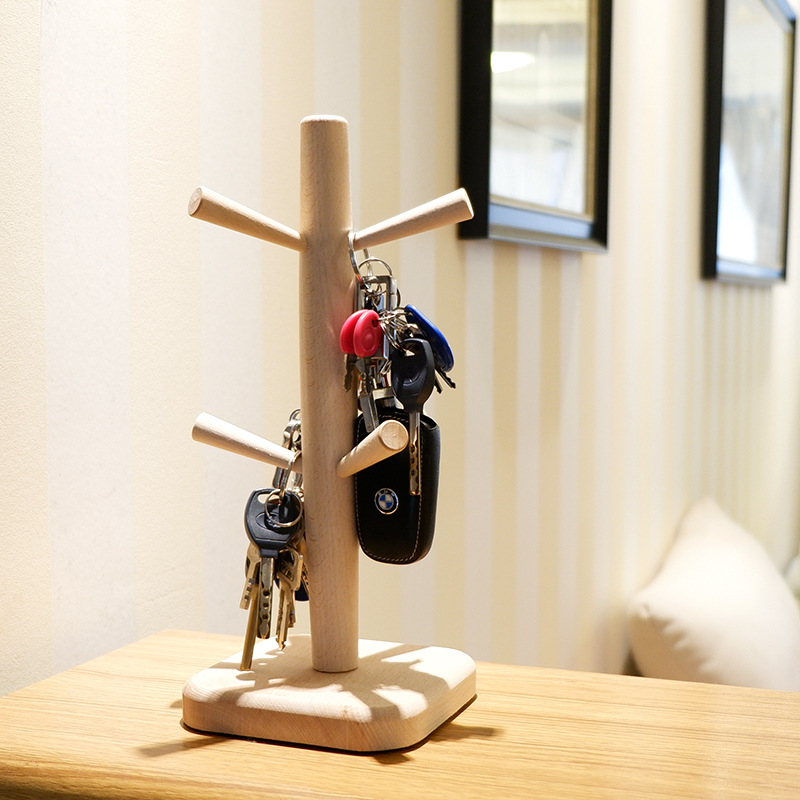 北欧挂钥匙架进门家用钥匙置物架简约玄关桌面原木色收纳创意摆件