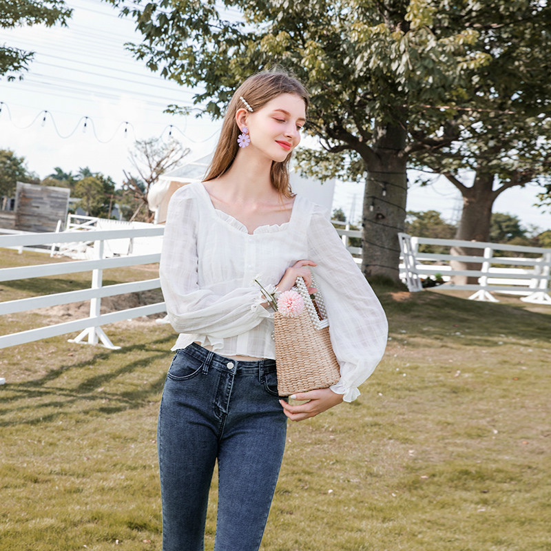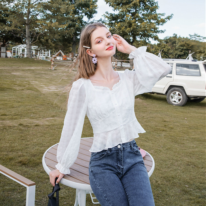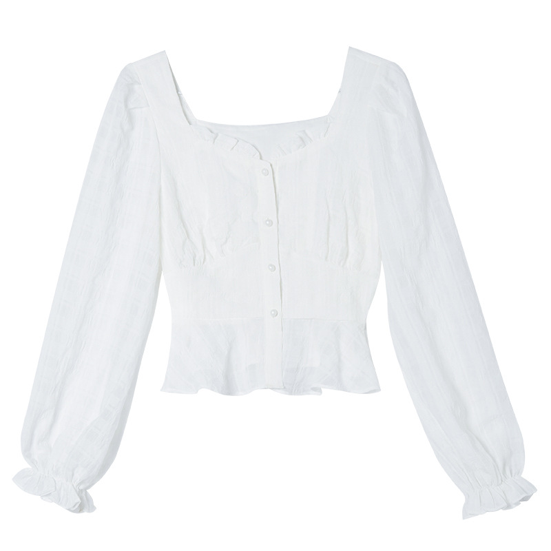 法式设计感小众雪纺衫很仙女的收腰露锁骨甜美衬衫 春秋夏上衣