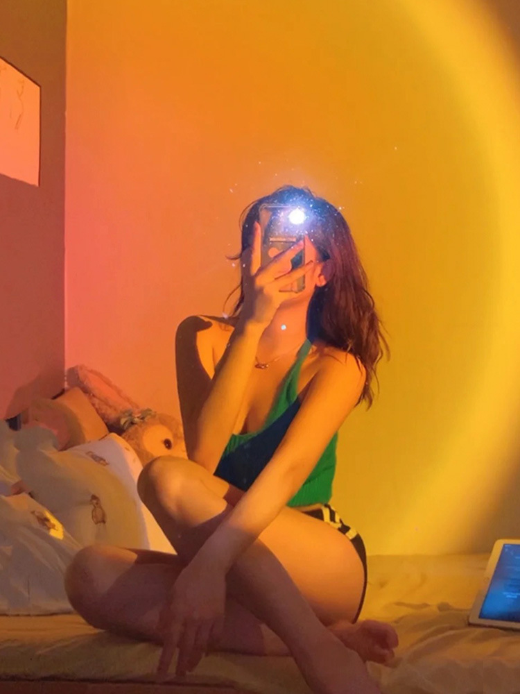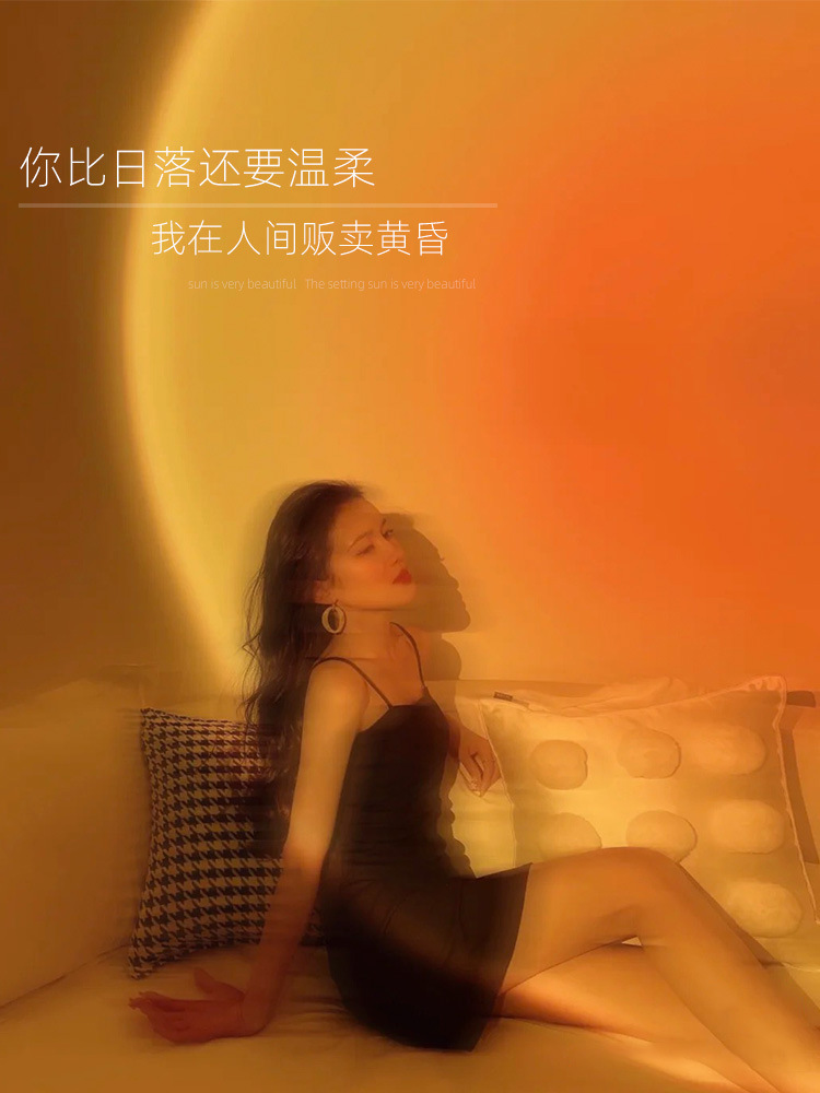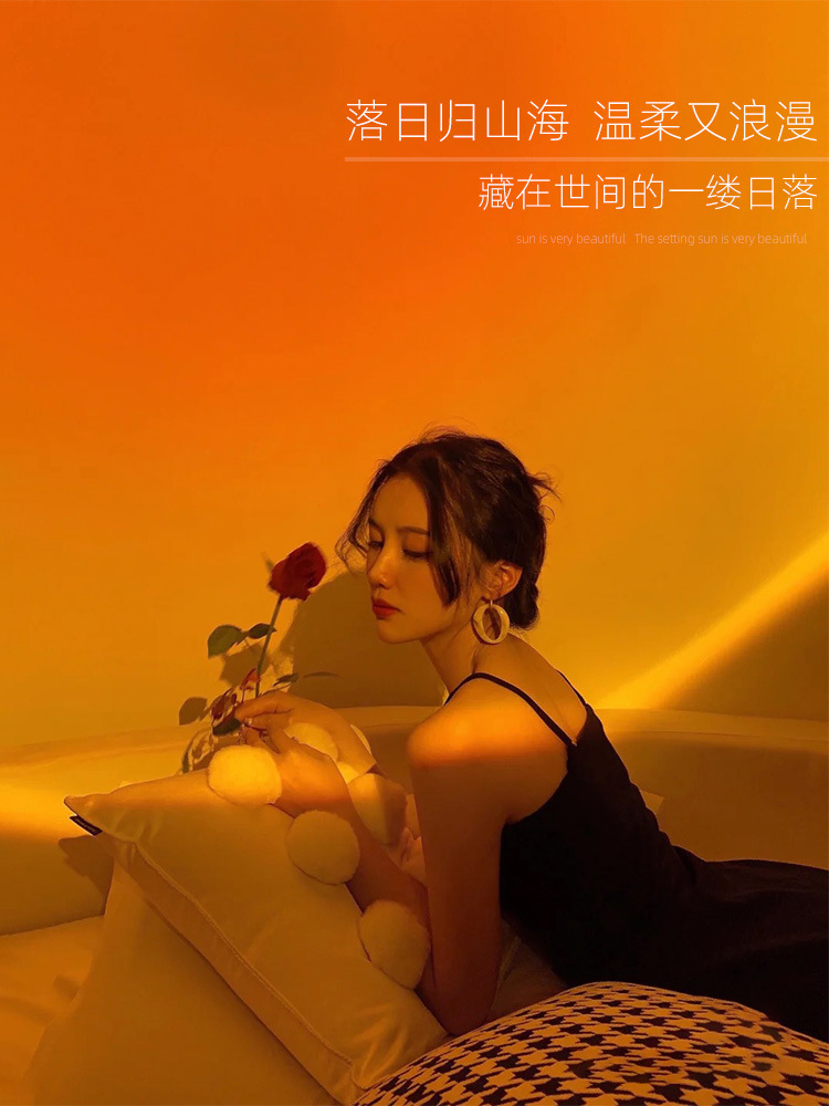 日落灯氛围夕阳灯拍照摄影艺术黄昏日不落地往红落日灯投影彩打光