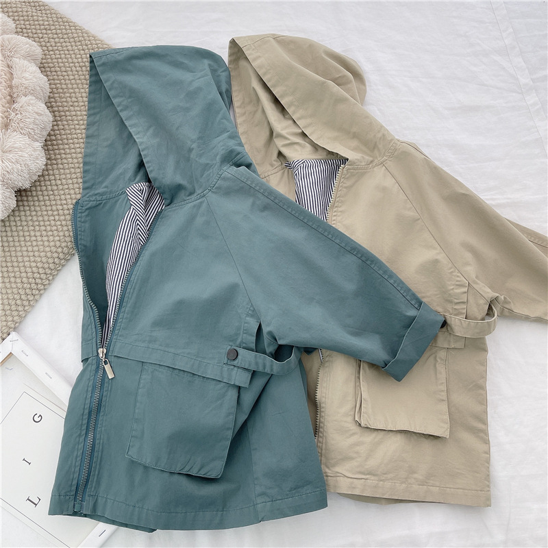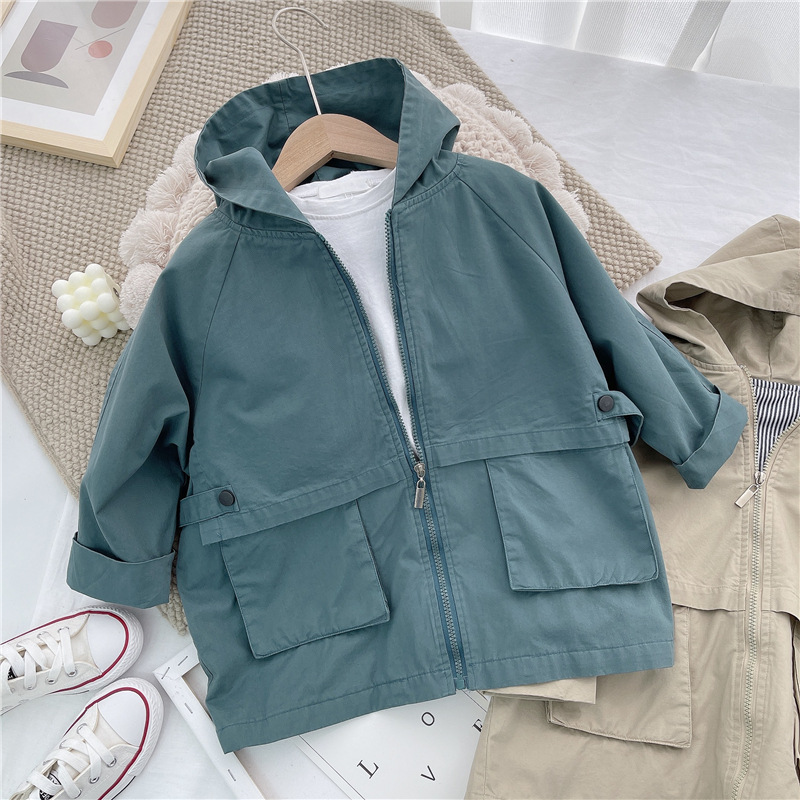 男童秋装洋气时尚连帽风衣儿童拉链中长款外套冲锋衣