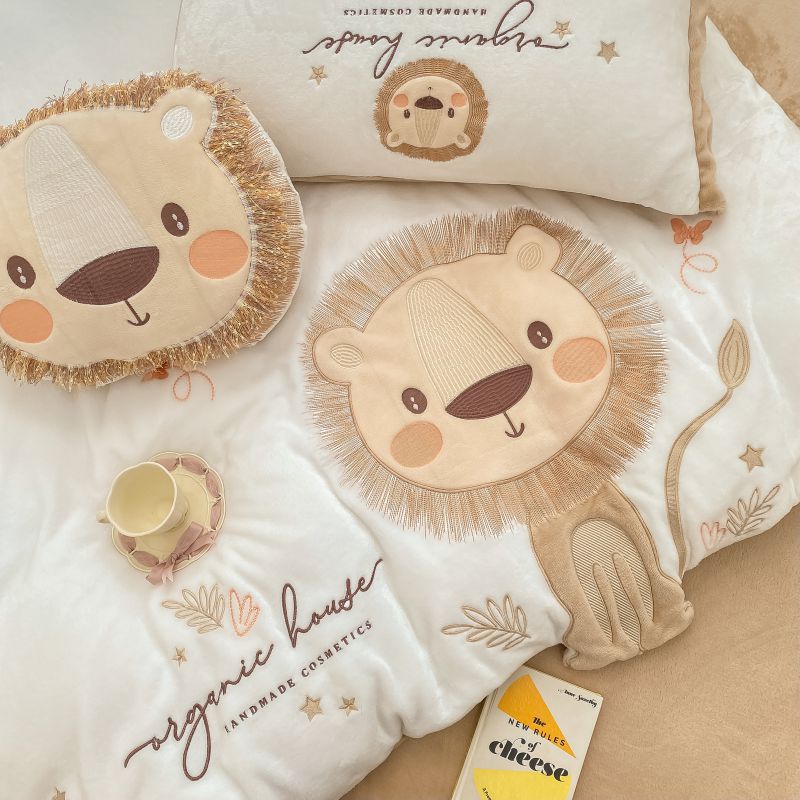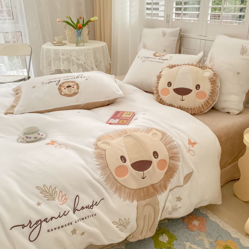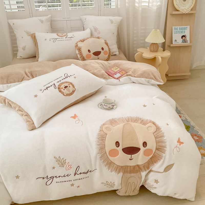 小狮子冬季泰迪绒四件套双面珊瑚绒牛奶绒被套儿童卡通加厚多件套
