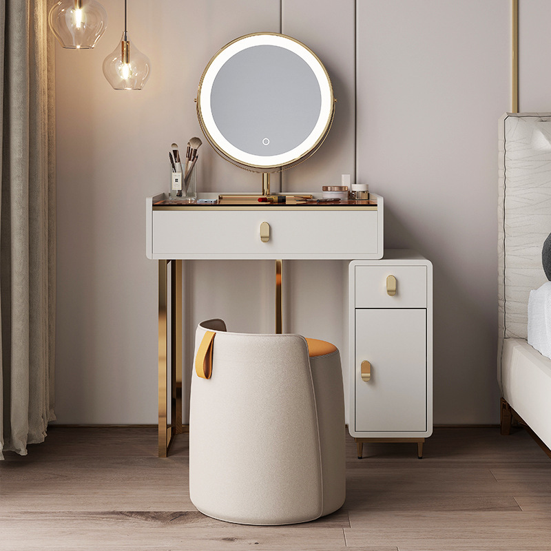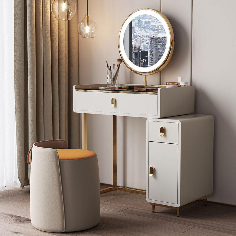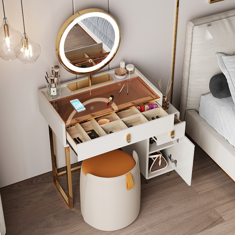 轻奢梳妆台小型卧室化妆台迷你北欧实木网红ins风现代玻璃化妆桌