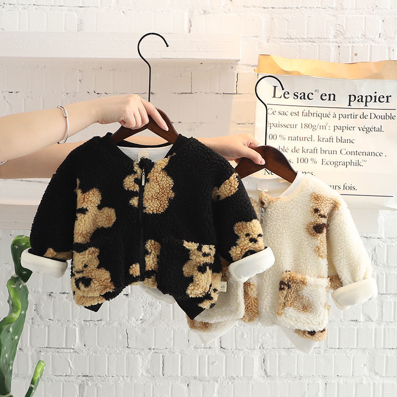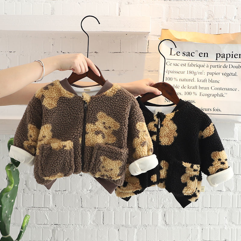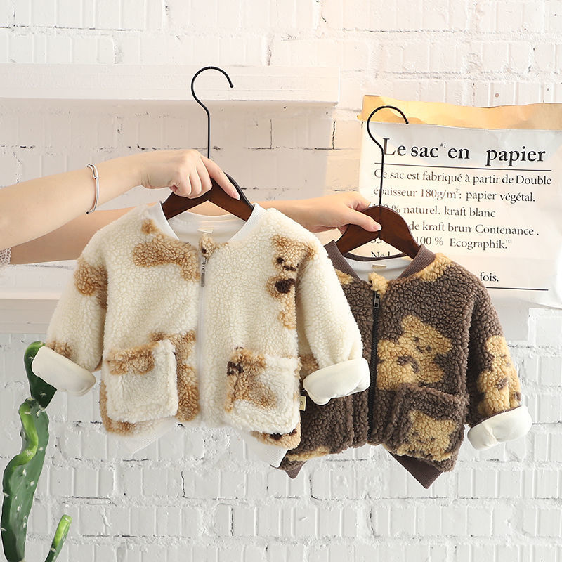 男童外套加绒加厚 洋气宝宝冬装羊羔绒保暖儿童棉衣潮