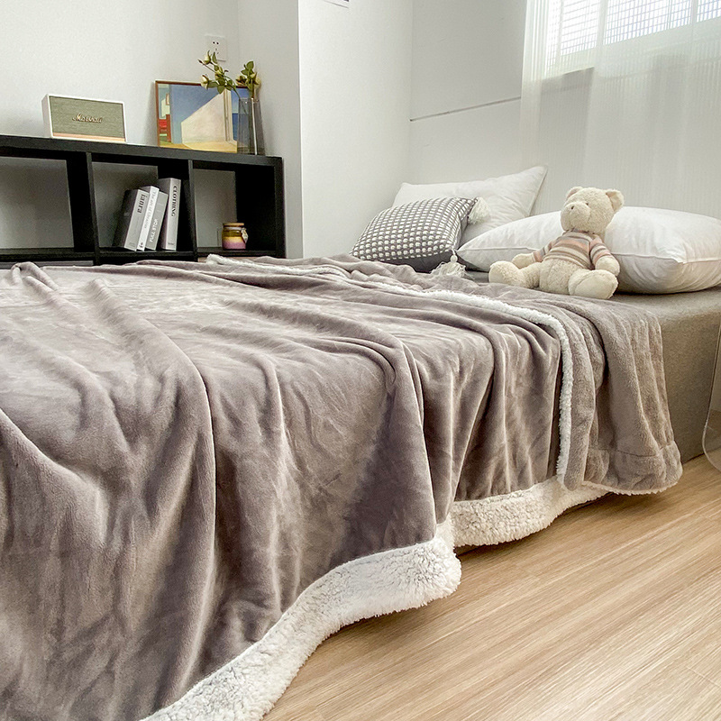 沙发盖毯冬季法莱绒毛毯加绒加厚纯色牛奶绒毯子珊瑚绒毯