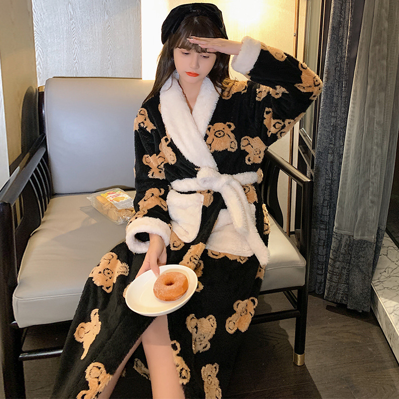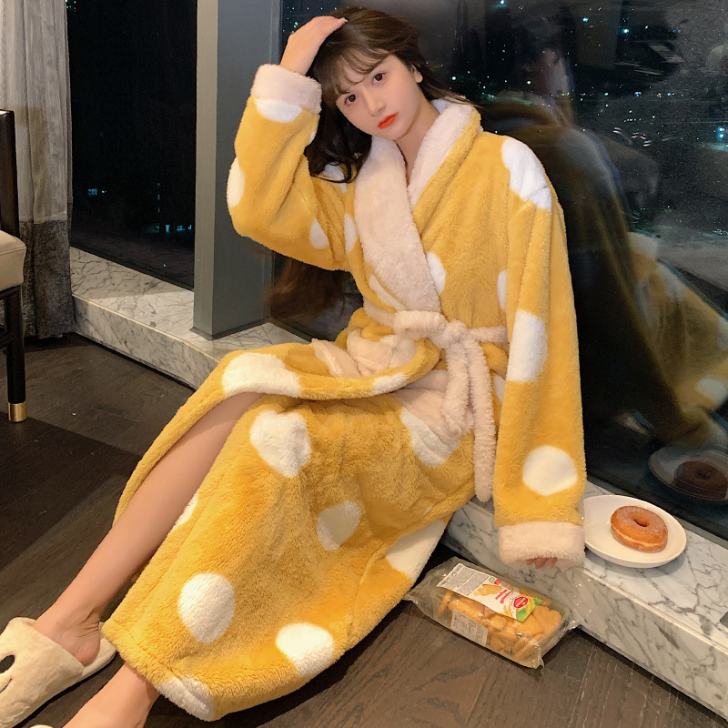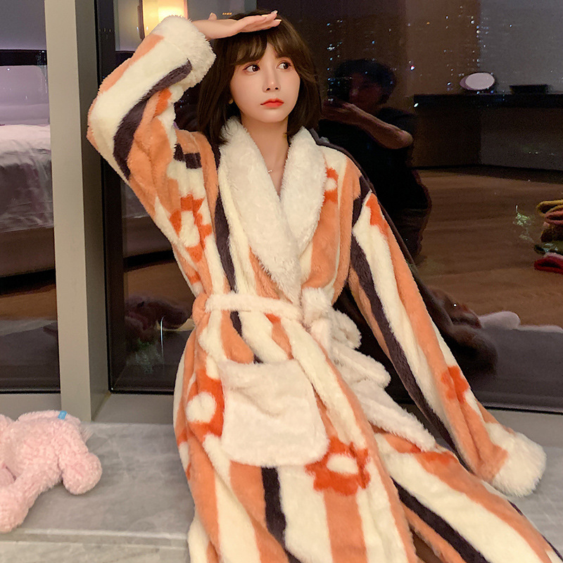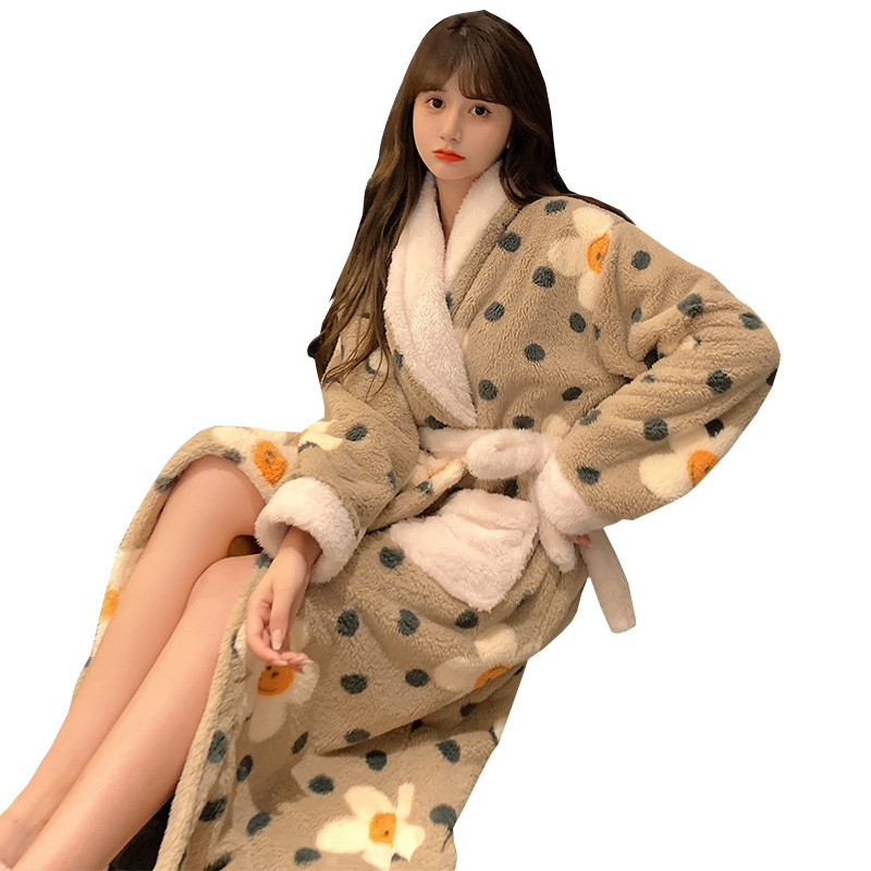 睡袍女冬长款加绒加厚法兰绒保暖系带浴袍睡衣春秋季珊瑚绒家居服