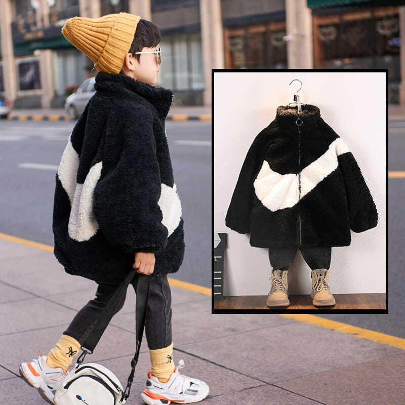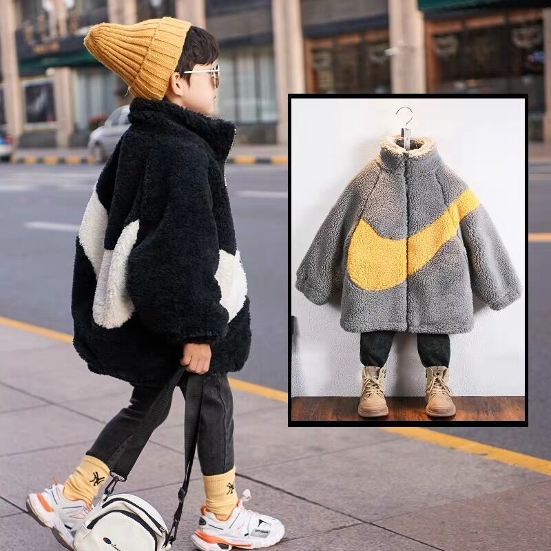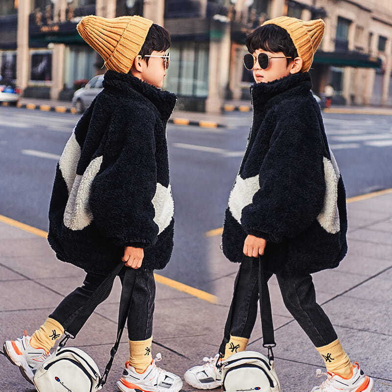 男童外套 韩版中大童羊羔毛洋气加绒加厚毛毛衣棉上衣