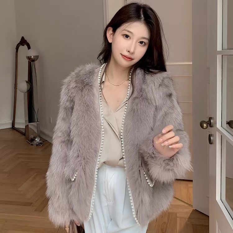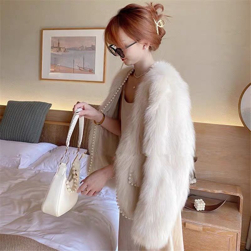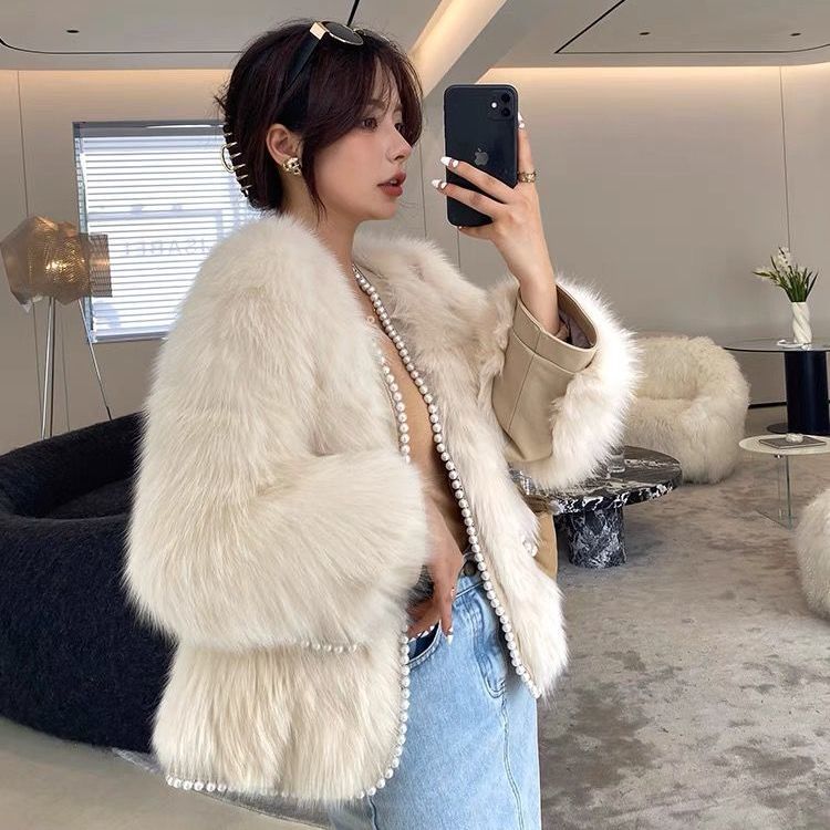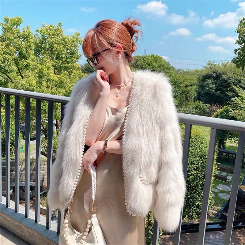 秋冬新款时尚仿皮草小香风珍珠短款皮草外套年轻款名媛风