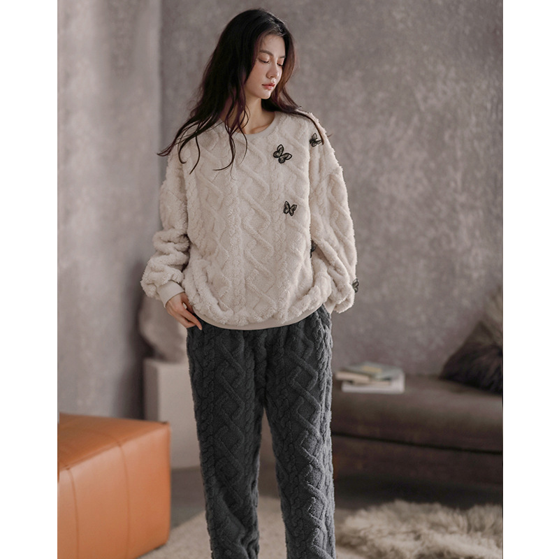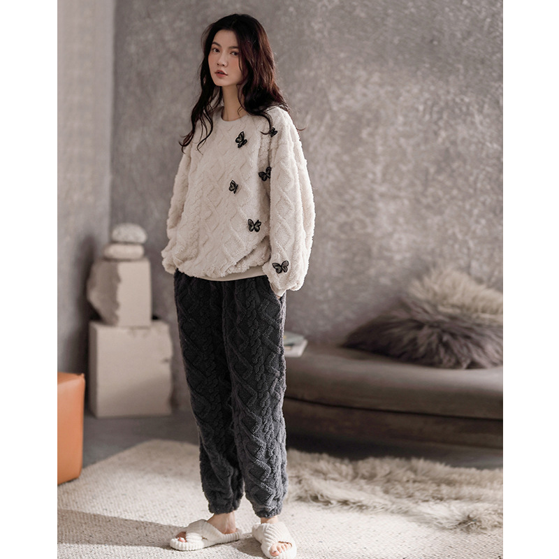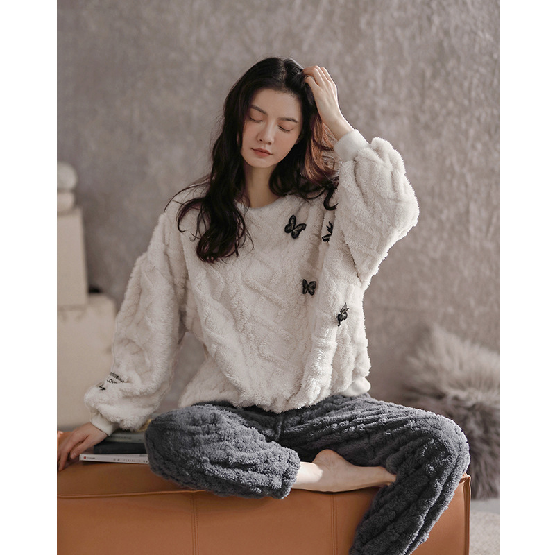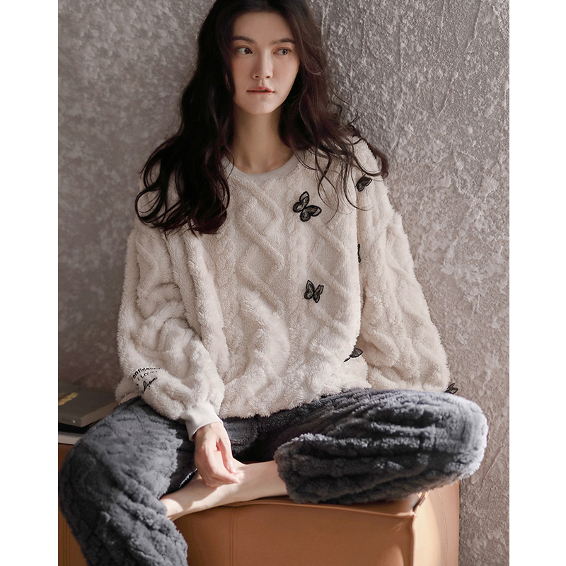 珊瑚绒睡衣女秋冬款 女冬季加厚加绒长袖大码家居服套装