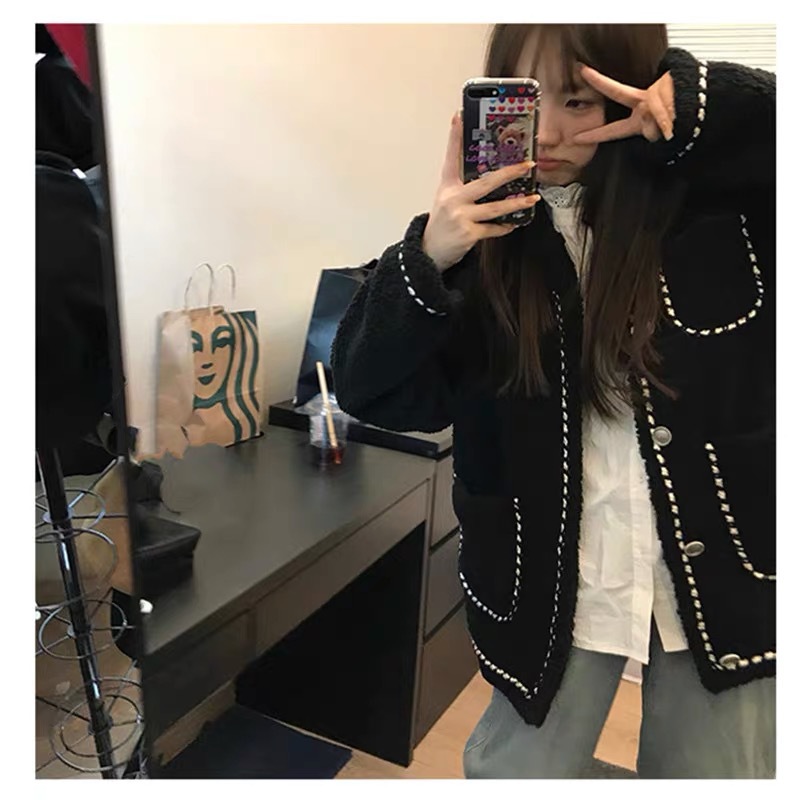 黑色小香风羊羔毛外套女宽松 秋冬皮毛一体加厚