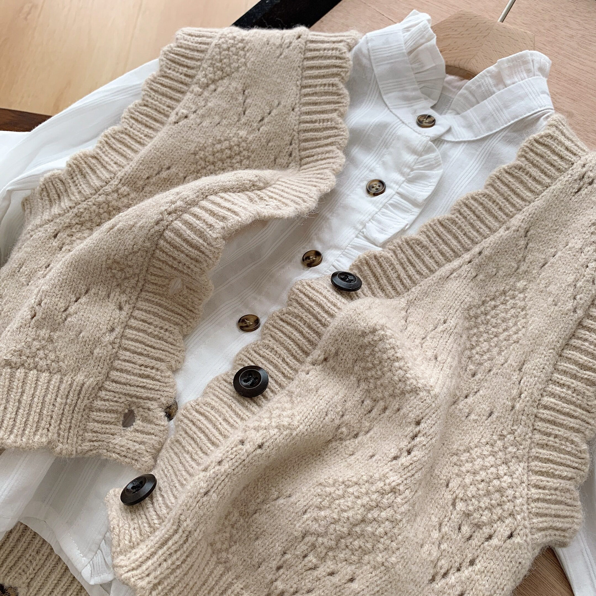 儿童德钻绒开衫毛衣女童镂空花边马甲 气质百搭 秋冬款童装